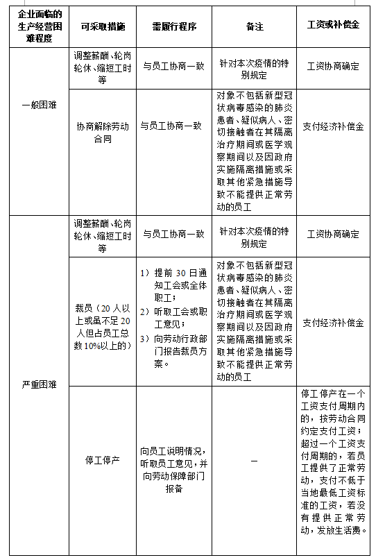 作者:王小晶 郭蒙蒙 2020-02-07当下正在流行的新型冠状病毒感染的肺炎不仅对人民生活产生了的重大影响,也使众多企业面临着严峻挑战。城市封锁、交通封锁、商店停业、复工延期等诸多疫情防控措施使得企业担负的劳动力成本、管理成本无法与劳动成果相匹配,其经营压力随着疫情的发展持续增加,为控制成本,很多企业,尤其是中小型企业可能会采取提前复工、裁员、停发或降低薪酬等措施,如不区分情况、不采取合理方式,将引致法律风险。