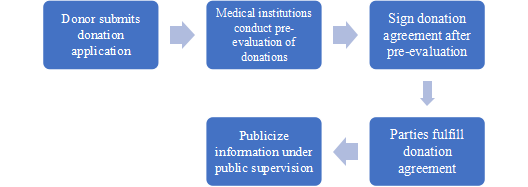 According to the provisions of Donations’ Administration Measures, medical institutions shall specify a functional department to manage donations and take charge of daily affairs ("Donation Management Department"). Donations made by Donors shall be accepted by this Donation Management Department. Other internal functional departments or individuals of medical institutions shall not accept the donation directly.